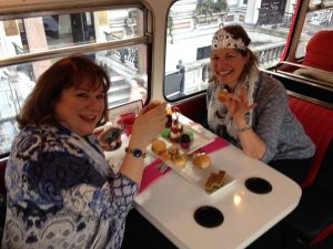 Tea on a bus? Why not? Especially if it’s London and the bus is a red double decker of yesteryear and it’s your birthday! My friend Suzanne was in town so what more perfect way to celebrate!