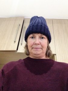 (This picture is me playing Mags the Homeless Woman in my upcoming film debut. Mags has a lot to feel blue about–even though she lives in California.)